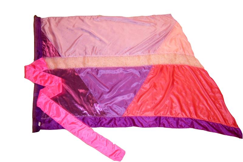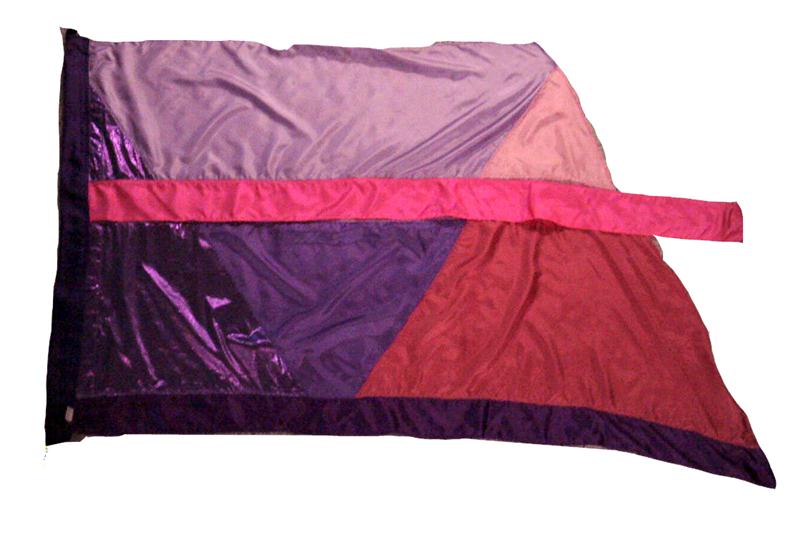 Lavender, Medium and Dark Pink, Purple Polysilk with Purple Lame. A Neon Pink Polysilk Tail attaches at sleeve and overlaps with pink sheer material. Reinforced sleeve.