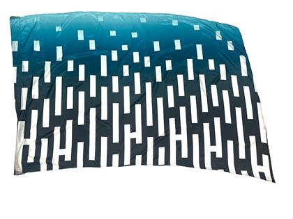 Digitally screen printed polysilk with black, white, and teal abstract design.