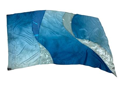 Digitally screen printed polysilk and lamé hybrid flag in shades of blue. Professionally Made by Style Plus.