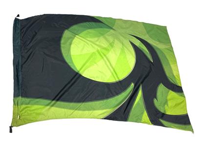 Digitally screen printed polysilk with green and black abstract design. Professionally Made by Fred J Miller, Inc.