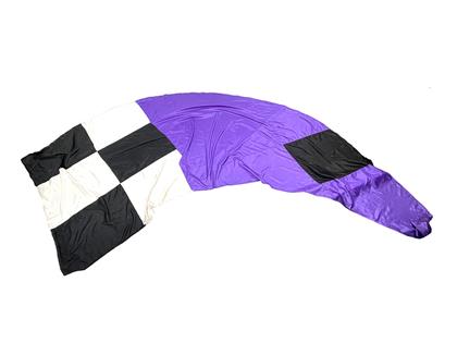Polysilk with white, black, and purple design.