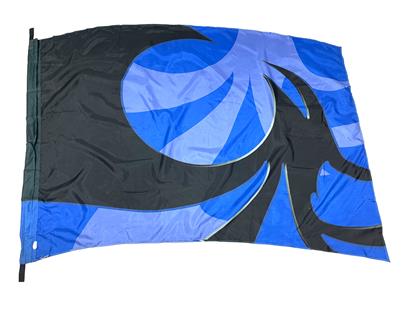 Digitally screen printed polysilk with blue and black abstract design. Professionally Made by Fred J Miller, Inc.