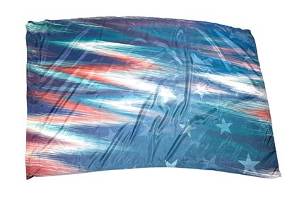Digitally screen printed polysilk with multicolored American flag abstract design.