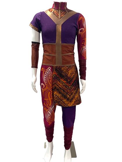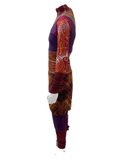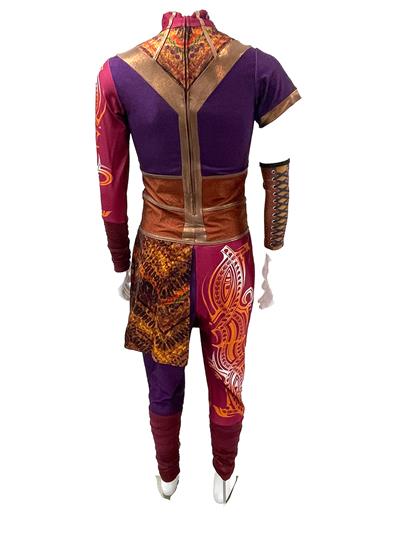 Digitally screen printed heavyweight lycra one sleeve unitard with incredibly intricate tribal design. Professionally Made by Dance Sophisticates. If you are interested in splitting this set, please contact the office (jodi@theguardroom.com) to discuss options.