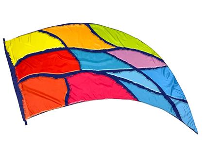 Digitally screen printed polysilk multicolored abstract design.