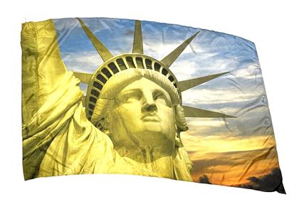 Digitally screen printed polysilk with green and blue Statue of Liberty design.