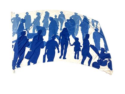 Digitally screen printed polysilk with blue and white crowd design. Professionally Made by Band Today.