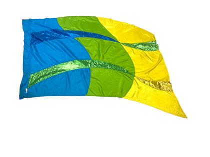 Polysilk and lamé with blue, green, and yellow design. Professionally Made by Dance Sophisticates.